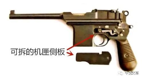 阿斯特拉900驳壳枪的内部构造与毛瑟手枪并不相同。其外形,从远处看差不多,但近看细看就有不同了。该枪最大的特征有二,一是为便于拆卸擦拭,它的机匣左侧板可以打开,“旁开门盒子炮”的俗称就来源于此。