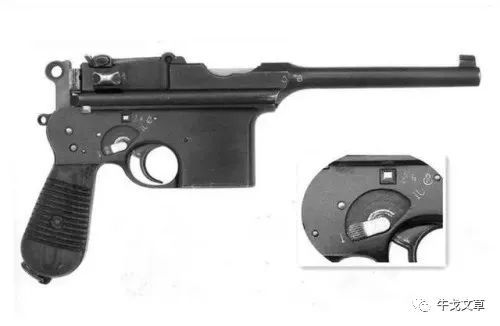 阿斯特拉901手枪,同样是10发固定弹仓,也是140毫米枪管,和900手枪不同的是它装有快慢机,可以选择半自动和全自动发射。如图: