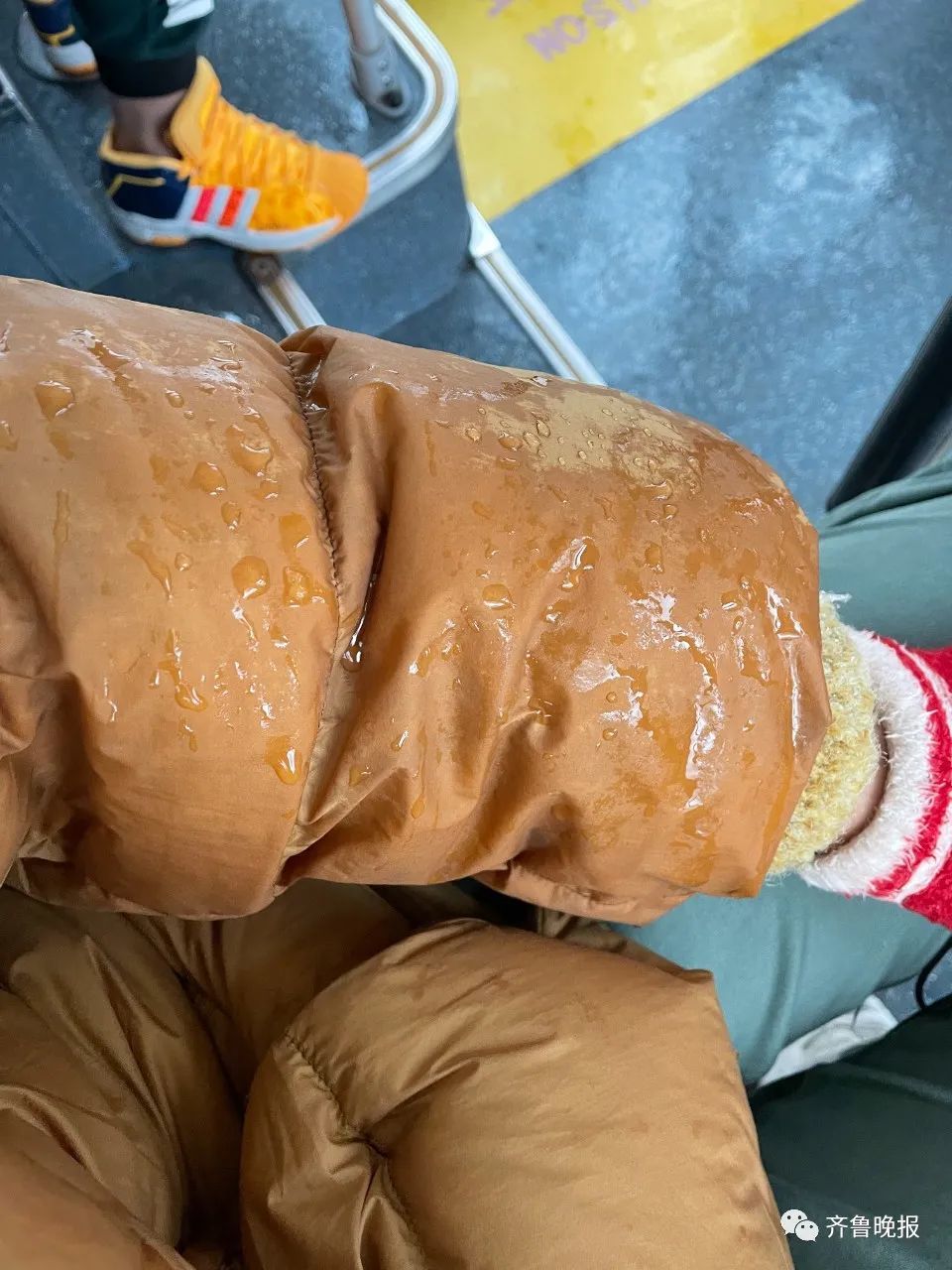 回来羽绒服淋成了雨衣...