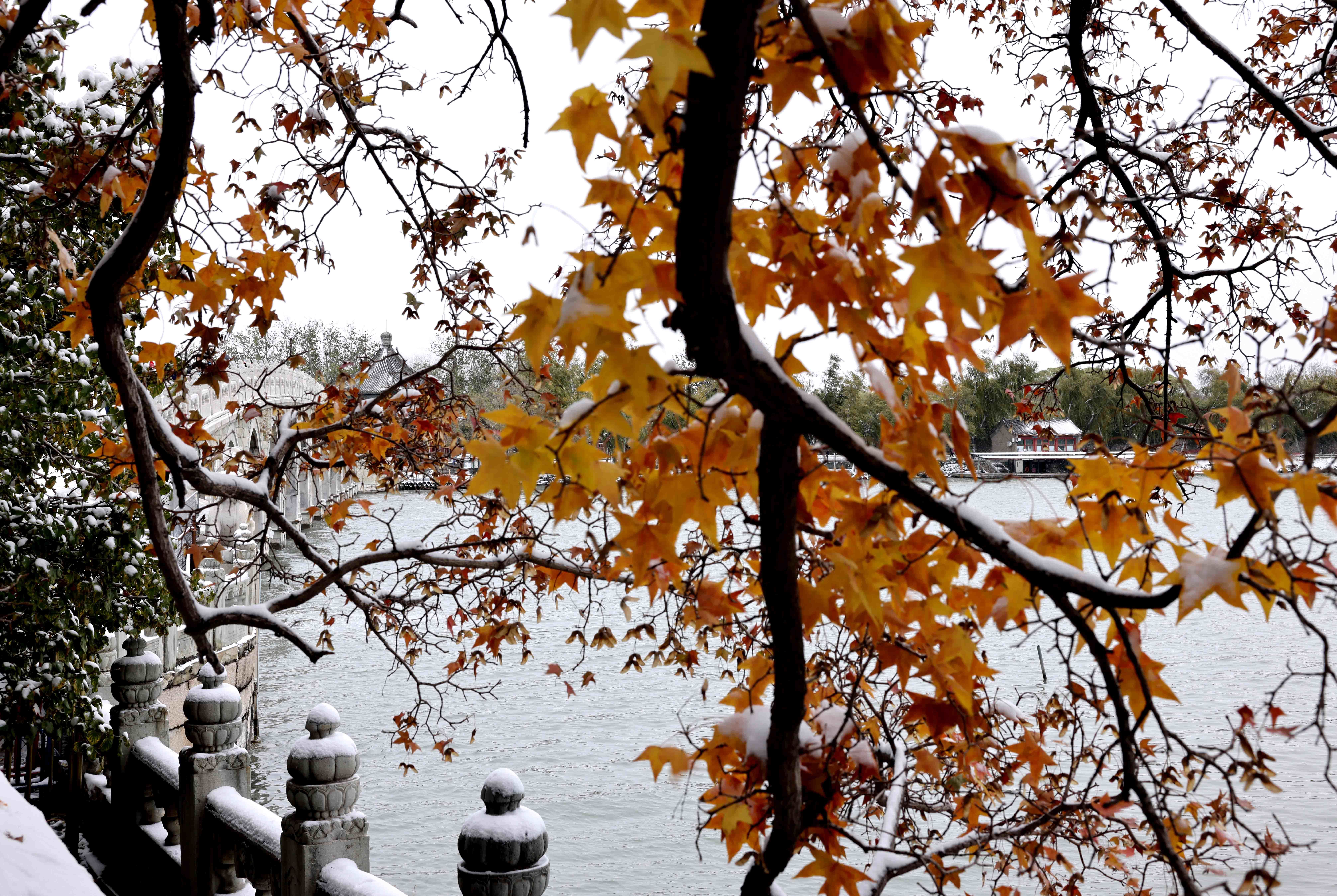 11月7日拍摄的颐和园雪景。