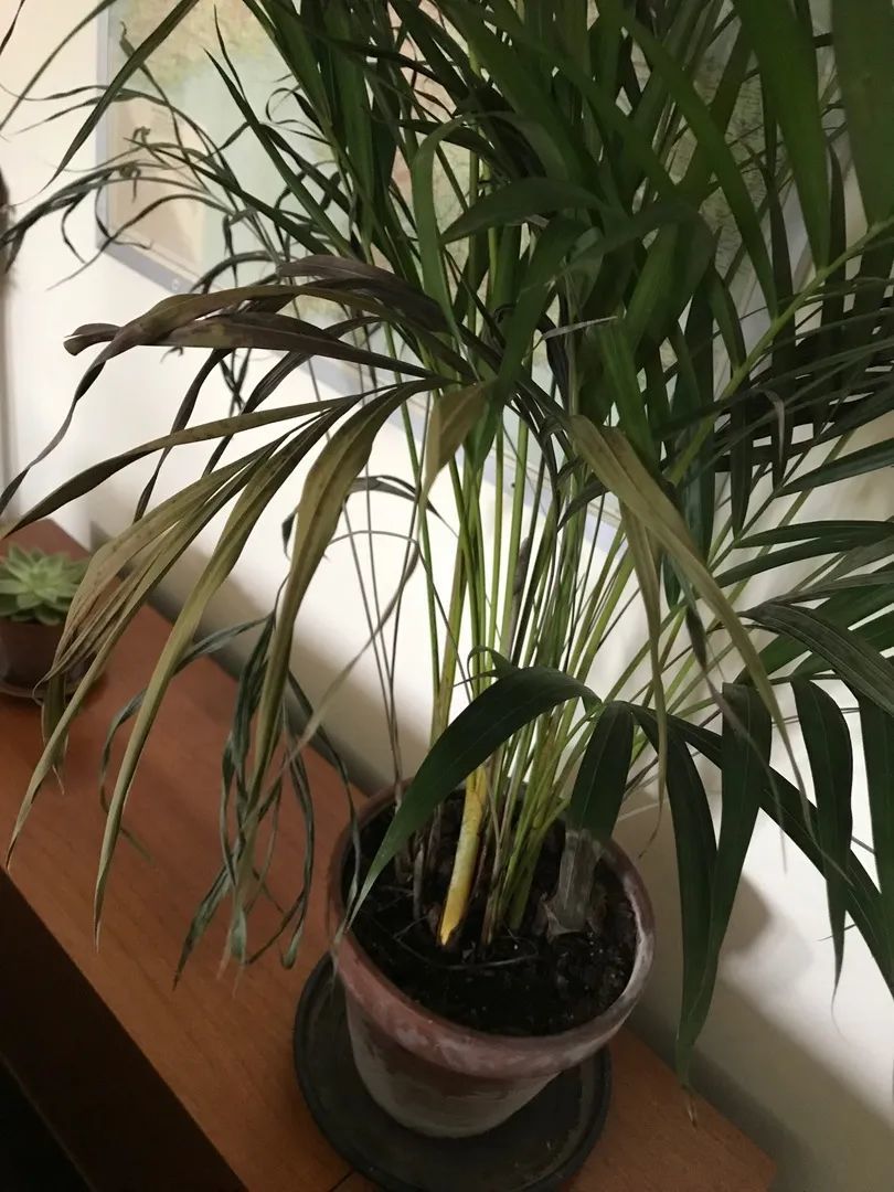 这些棕榈科的观叶植物都是喜欢较为充足的光照的,要保持环境温暖湿润,有较高的空气湿度,在春夏生长季节还要保持土壤湿润,这样它们才能维持最佳的状态,而养成室内之后,这些植物能够接受到的光照变得非常少,而且室内的空气通常是比较干燥的,也容易导致棕榈科的植物叶子发黄干枯,另外则是通风和状况。