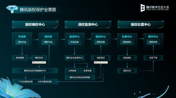 腾讯安全灵鲲监管产品总监李乐乐表示,腾讯安全将已稳定服务腾讯内部8年的版权保护系统升级为对百万数字版权企业开放的区块链版权保护平台,构建覆盖版权保护全流程的应用体系,实现对版权全生命周期的管理。