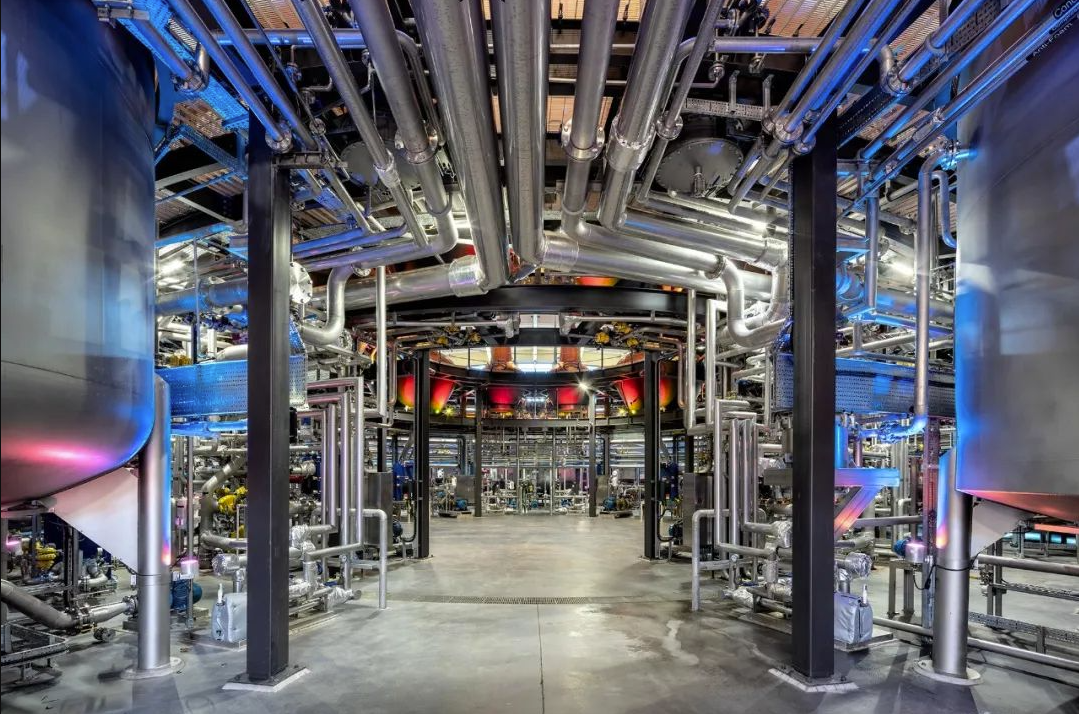36个蒸馏器被分为三组,围绕成三个圆型均勻分布在蒸馏间内,展现了精密对称的协调性,一眼望去那种宏大壮阔呈现出来的气势令人为之惊叹。