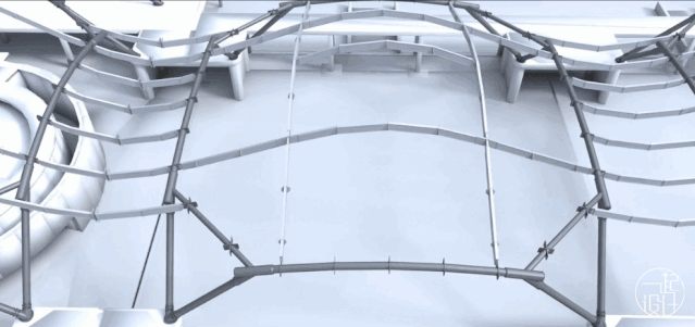 新酒厂的设计师Graham Stirk表示:“我们希望能将新酒厂和原有的自然环境几近完美的融合在一起,追求和谐共赏的效果,这样才能更好地展现产品最珍贵的价值。”基于此理念,Graham Stirk想出了独特的波浪型的木质屋顶结构,由380,000个独立构件搭建组成,算得上是世界上最复杂的木造屋顶结构之一。