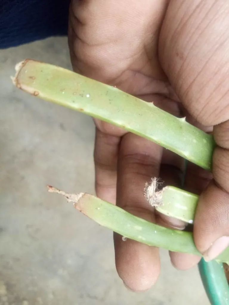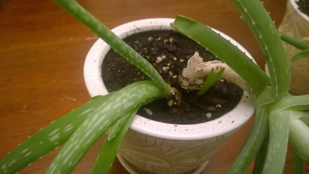 如果你发现芦荟中心处的叶子,变成水渍状,叶子慢慢腐烂,就像摊大饼一般,那就是叶心积水,导致叶心腐烂了。