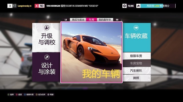 车辆收集是一个最关键的玩法,总共显示了534辆车不同的车,经过我不懈的努力,终于收集了其中的2%,看起来离胜利就不远了!不过作为一个伪车迷,讲真我搞不太清楚每个车的具体性能到底如何,也不太明白如何改装(但奔驰 AMG ONE 和 2021 福特Bronco Badlands总归是好的)。比较友好的是,你可以把这个交给自动改装的选项,据一个玩得比较好的哥们儿说,如果你不懂改装车的话,那最好还是让他自动改装,至少不会选错。好吧反正我也不懂,就听他的吧,不过外观我还是可以自己随便搞的,碳纤维必定增加性能,你说对吗?