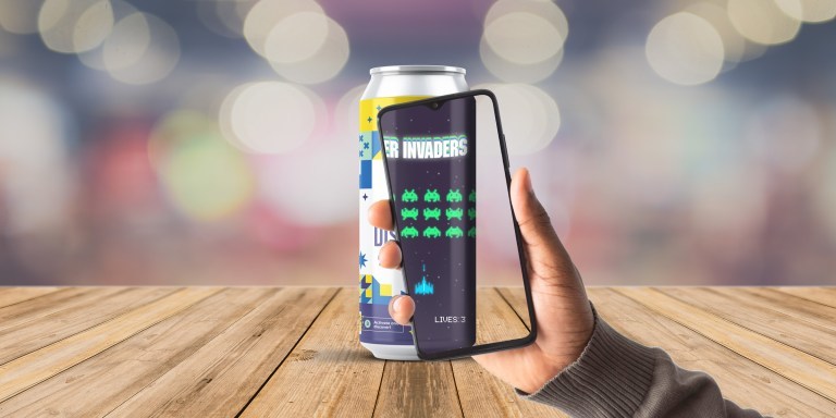 为了帮助展示其技术的应用,Immertia发布了一款名为"啤酒侵略者(Beer Invader)"的新AR游戏,正如你所期望的那样,用户可以在一个普通的铝制啤酒罐上体验。受经典街机游戏"太空侵略者(Space Invaders)"的启发,用户通过使用iOS或Android设备上的Swigr应用程序扫描定制的标签进入游戏。然后,将智能手机对准罐子、点击屏幕即可体验。