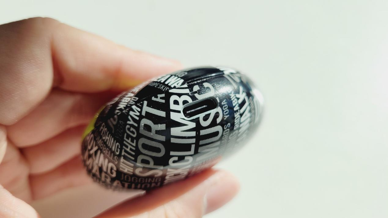 耳机仓外壳摸起来冰冰凉凉的,应该是喷漆的铁盒,整体的重量约64g,整体非常的轻巧,再加上耳机圆滚滚的鹅卵石造型,握在手里非常的舒适。