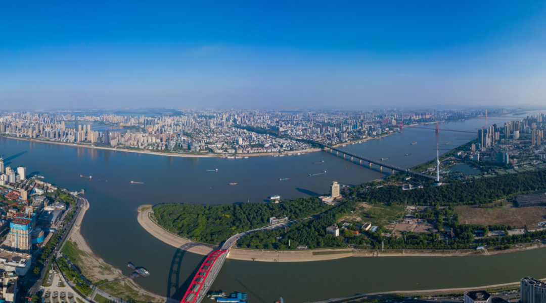 目之所及,全是世人眼里武汉最有名、最好的资源:长江、汉水、江滩公园、龟蛇锁大江、黄鹤楼…河流、山体、城市建筑在视线里起承转合、非常丰满。