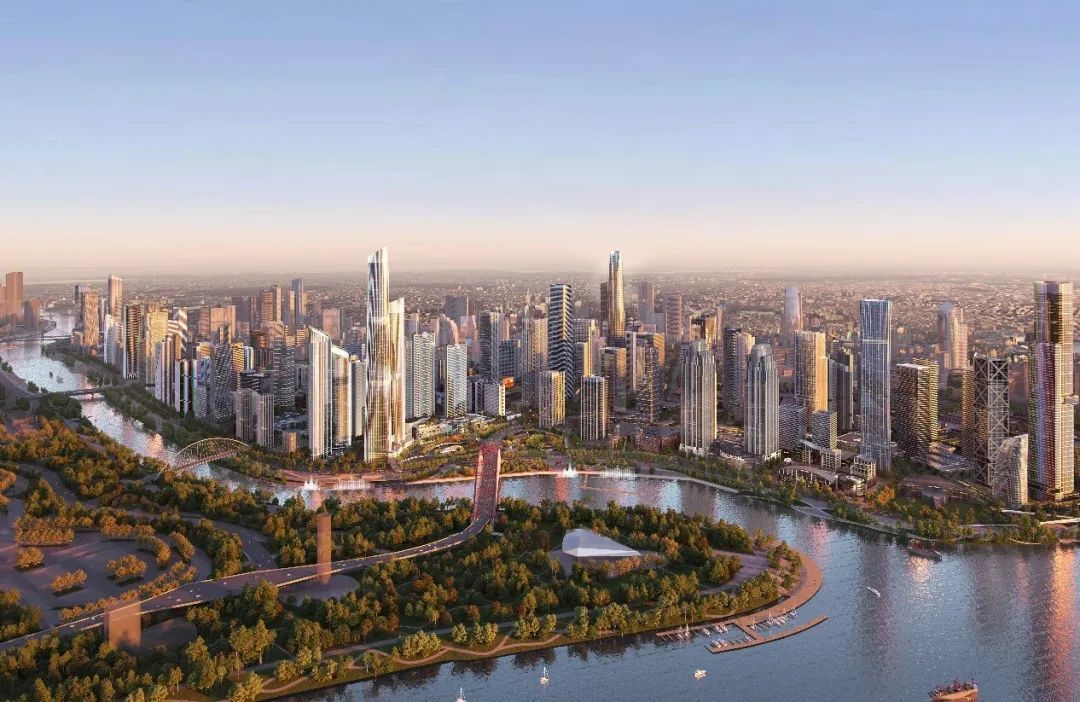 A1地块,规划的是全球最高双子塔(约470米+约356米)金融总部集群商办物业。