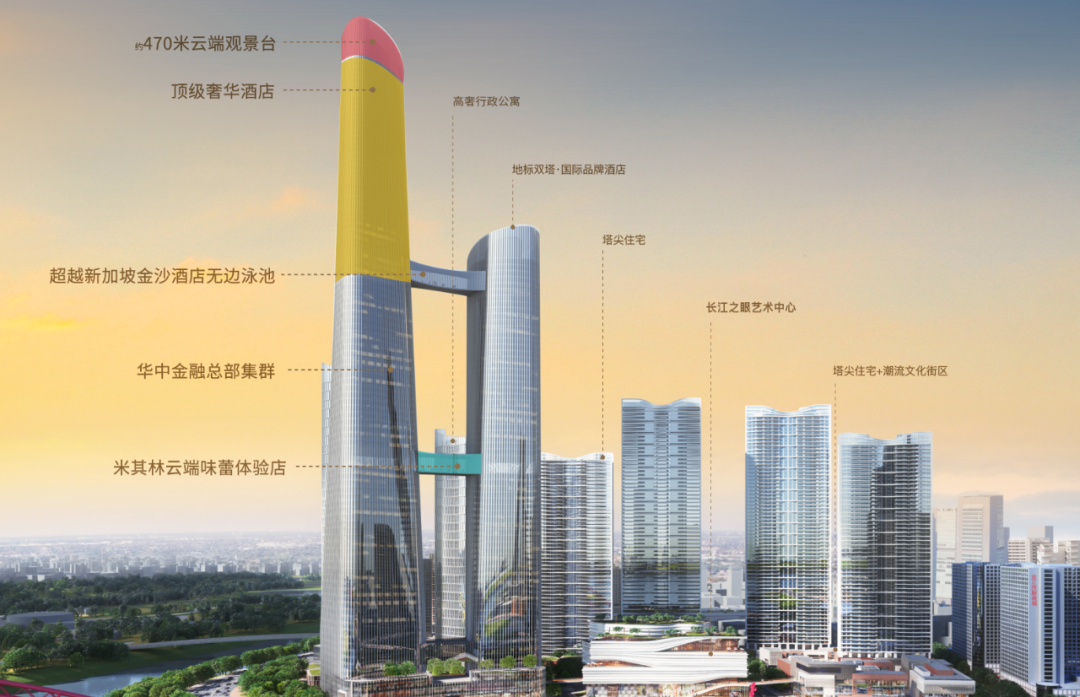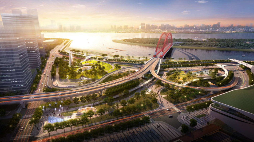 北侧是汉正街绿轴,南侧是晴川桥视觉轴、西侧是复星BFC的商业轴、东侧是滨水景观轴。整个区域被串联成整体,将是武汉这座城市的又一处时代地标。