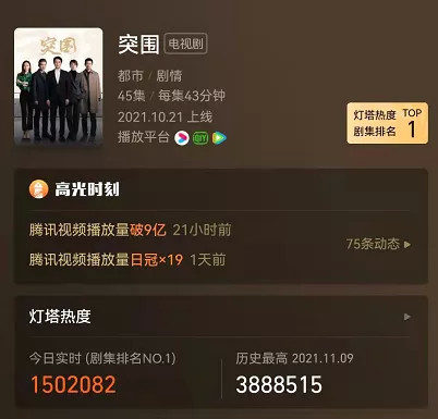 根据灯塔实时数据显示,该剧的收视率稳居第一,取得了可喜可贺的成绩。《突围》属于渐入佳境类型的影视作品,制作方不惜用七集的篇幅铺陈人物关系,这就导致每个出场人物的剧情发展都留下足够的悬念,引人入胜。