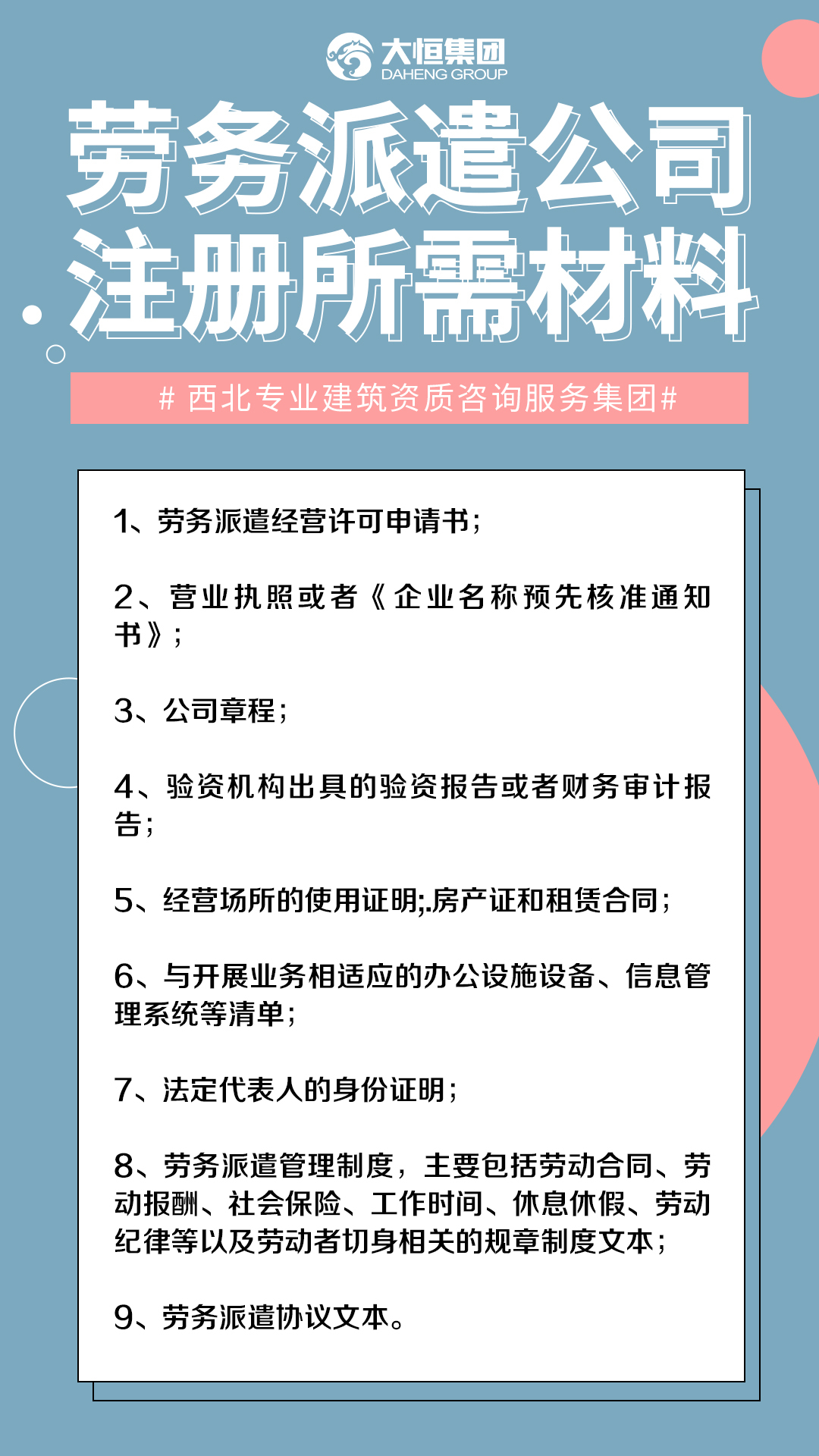 1、劳务派遣经营许可申请书;