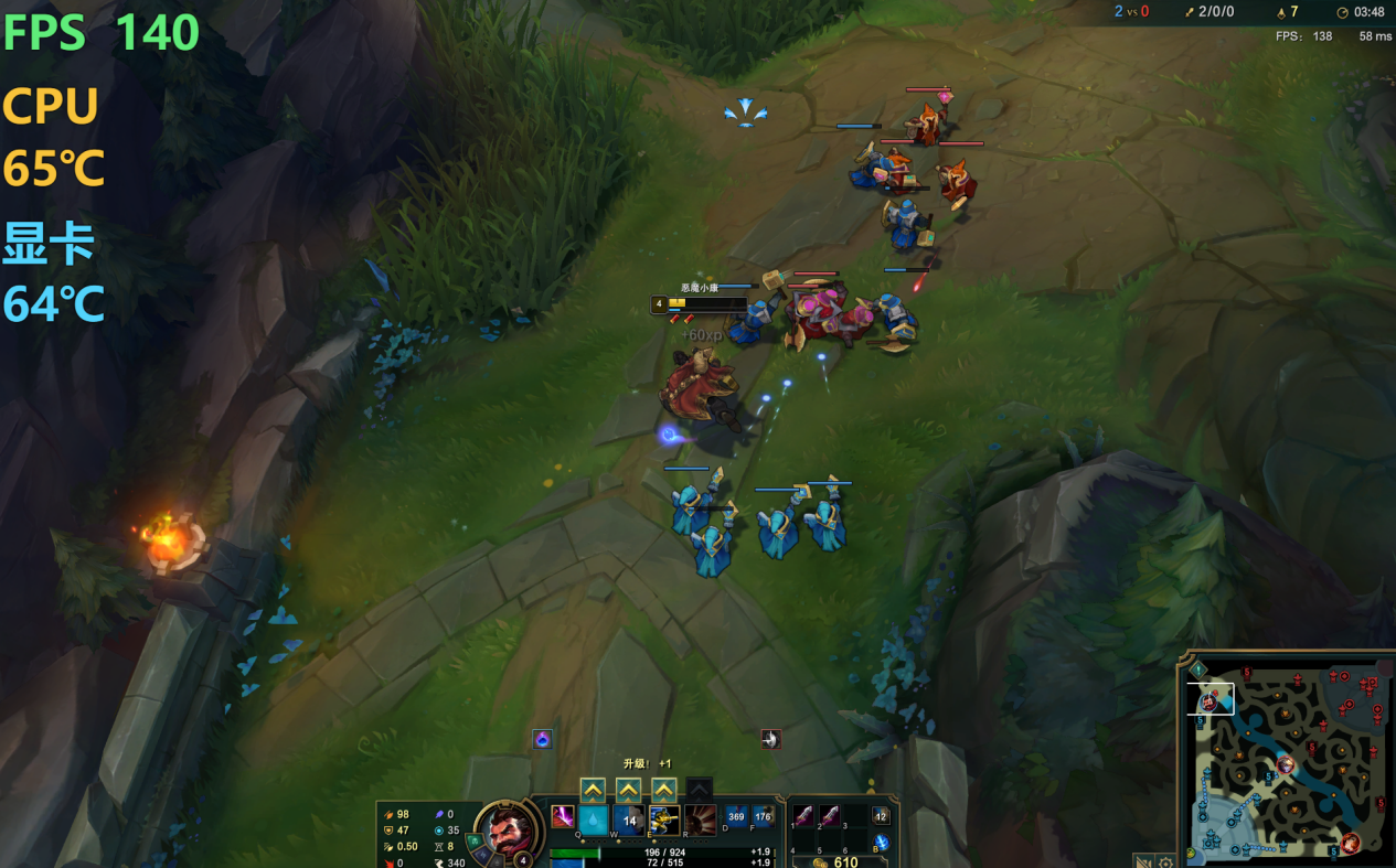 i7-1185G7 后面这个 G7 意味着它搭载了 96EU 的满血核显,配合双通道 4266 内存可以达到不错的性能,因此在工作之余,想要玩玩常规网游还是没有任何问题的,在《英雄联盟》中,可以轻松运行在 1920*1200 分辨率和极高特效下,对线帧数一直维持在 140 帧上下,跑满 120Hz 屏幕不成问题,体验很棒。