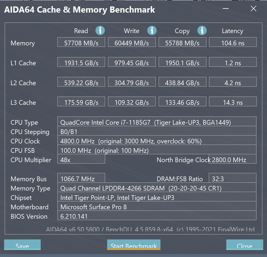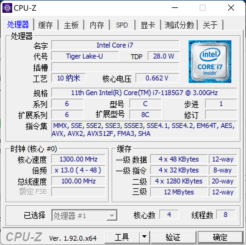回到 Surface Pro 8 本身,它的性能能做到什么样的档次呢?我们手中的 Surface Pro 8 搭载了 11 代低压酷睿 i7-1185G7 处理器,它拥有 4 核心 8 线程,频率最高可以达到 4.8GHz。由于是低压处理器,它的标准 TDP 为 28W。