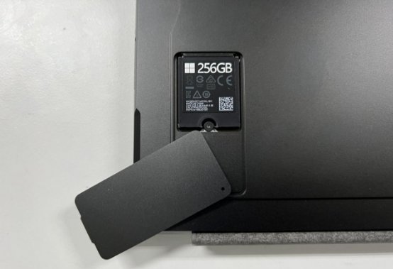 由于机身变薄了,侧面的接口也发生了一些变化,原来的 1A1C 变成了两个满速雷电 4 接口。当然 Surface 祖传的磁吸充电仍然得以保留。遗憾的是读卡器接口也被取消,想要扩容的话可以用一根卡针捅开底部硬盘保护盖,自行升级 2230 规格的 SSD,不过要记得做好系统迁移工作。