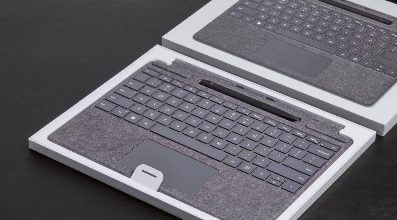 当然,没有磁吸键盘的 Surface 是没有灵魂的,这一代 Surface Pro 8 采用全新的特制版专业键盘,不仅继承了轻薄的外观、出色的手感和奢华的欧缔兰材质,还新增了磁吸笔收纳充电槽。