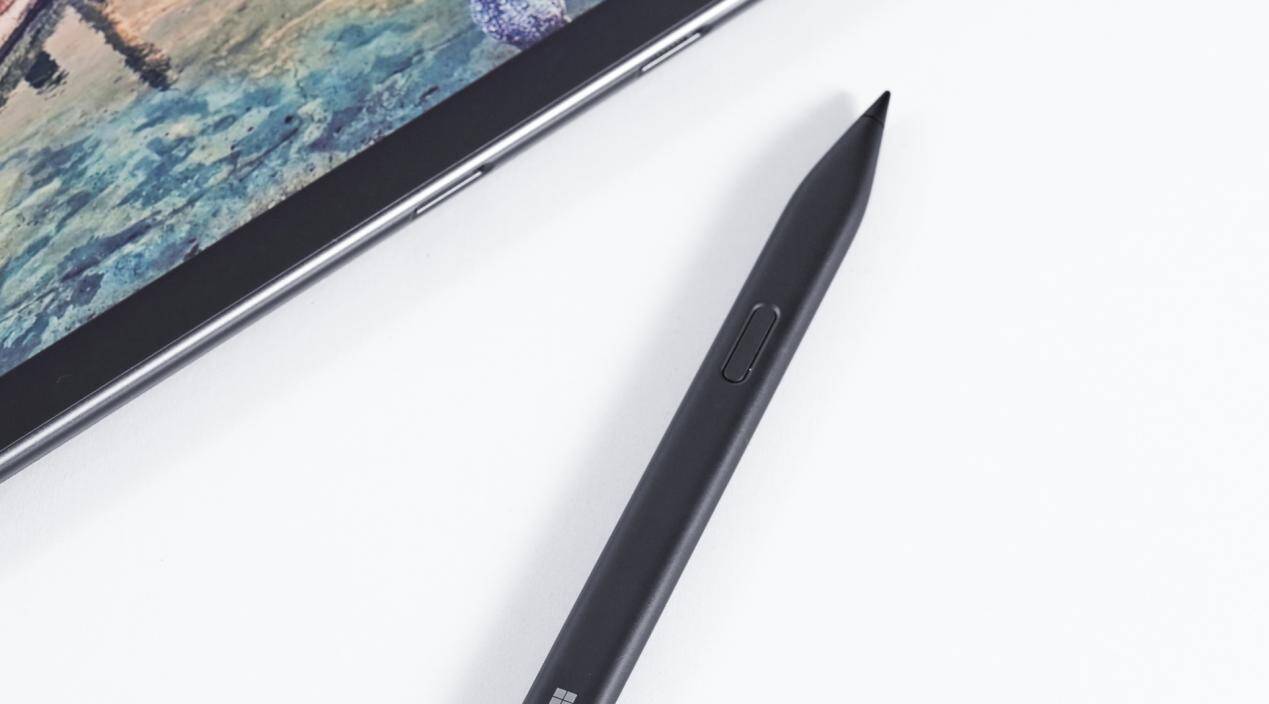 这样的一块屏幕,用来应付简单的 PS 修图以及绘图工作是没有什么问题的了。这时就要用上全新设计的 Surface 超薄触控笔 2 了。为了方便收纳,Surface 超薄触控笔 2 采用了扁平式设计,同时长度也比较短,因此对握笔姿势有一定要求。不过舒适度上还是过关的。