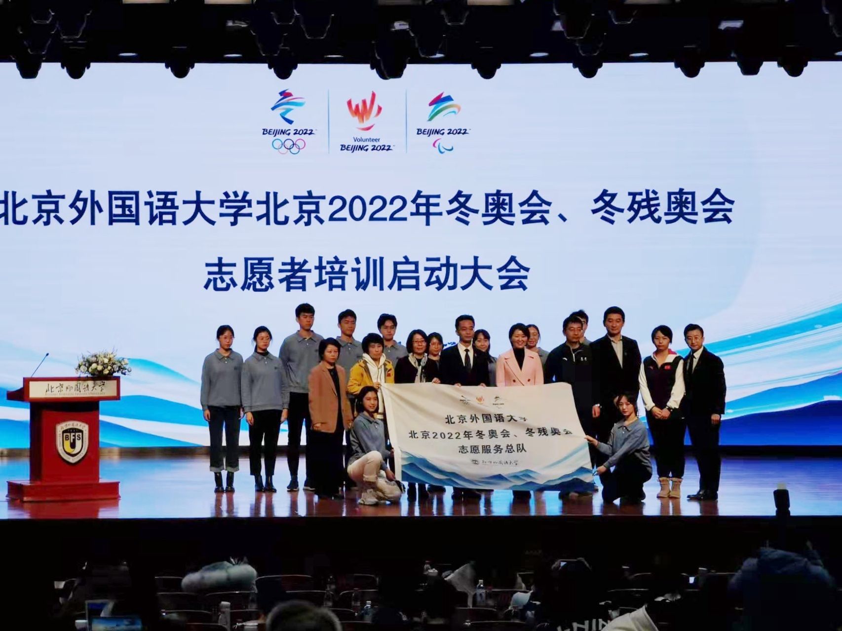 北京外国语大学北京2022年冬奥会、冬残奥会志愿者培训启动大会。实习生 刘艳爽 摄