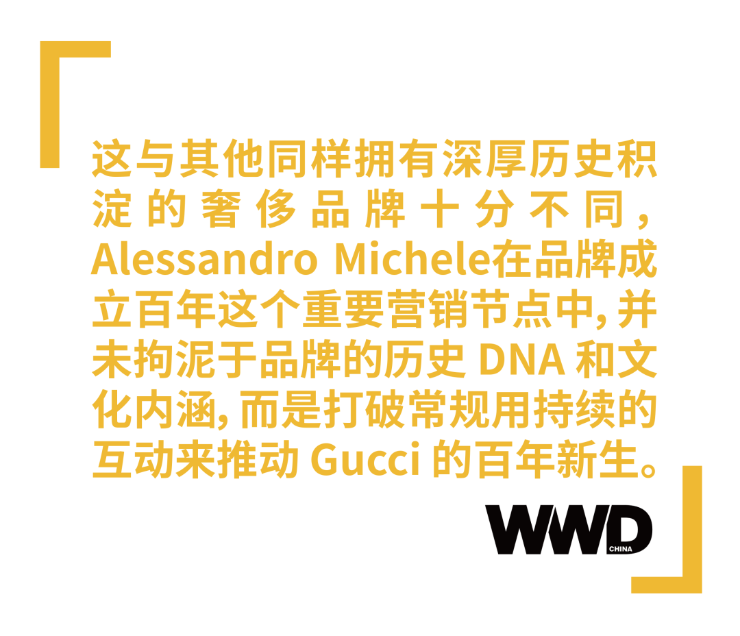 Alessandro Michele 便是基于这一点,开展了一系列 Gucci 百年纪念活动。