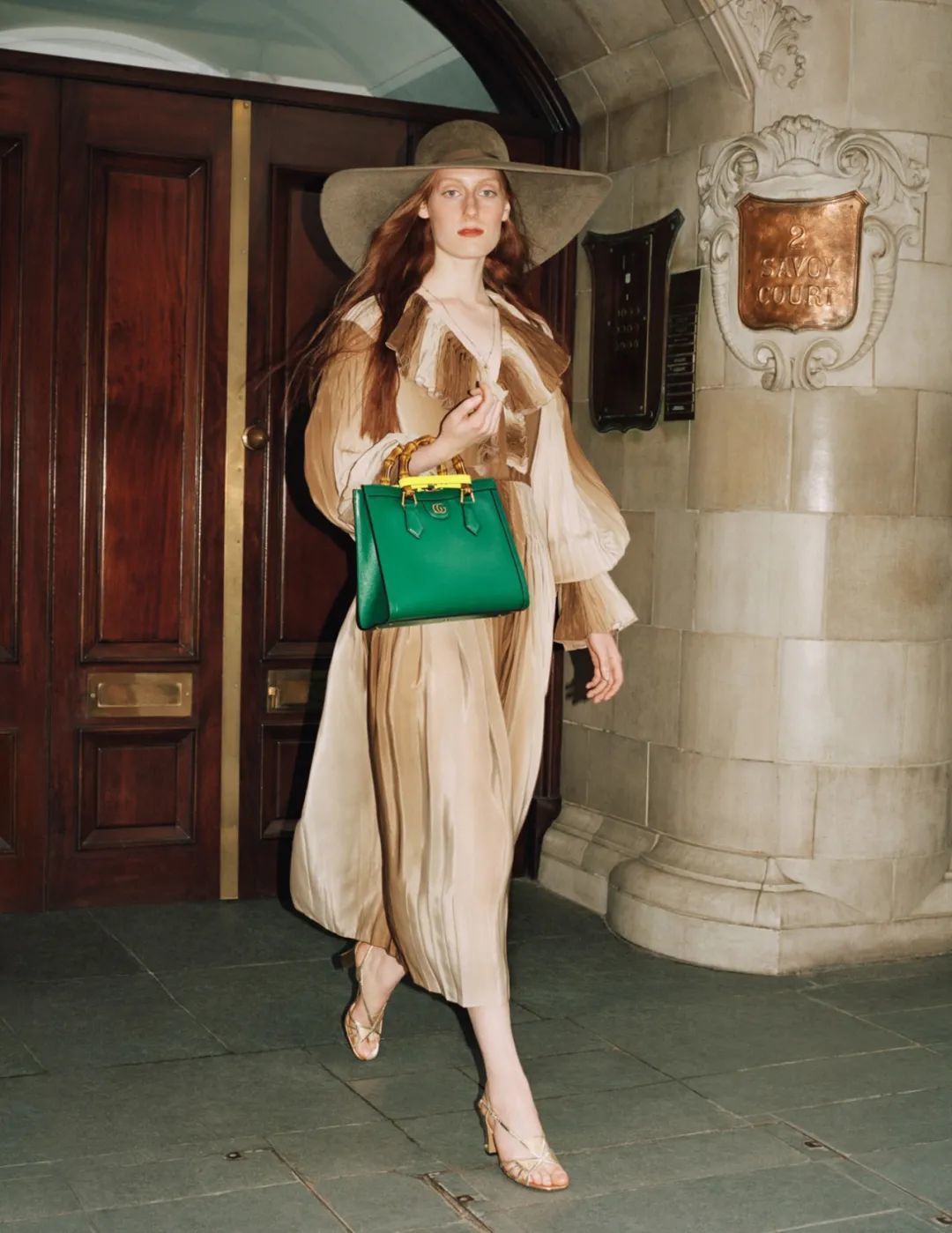 在该手袋形象大片中,品牌回到了品牌创始人 Guccio Gucci 先生曾工作的伦敦 Savoy Hotel 进行取景拍摄,抓拍下模特或身背或手提 GUCCI DIANA 竹节手袋的真实身影,让人联想起彼时穿着时髦的名人留下的极具风格的街拍影像。