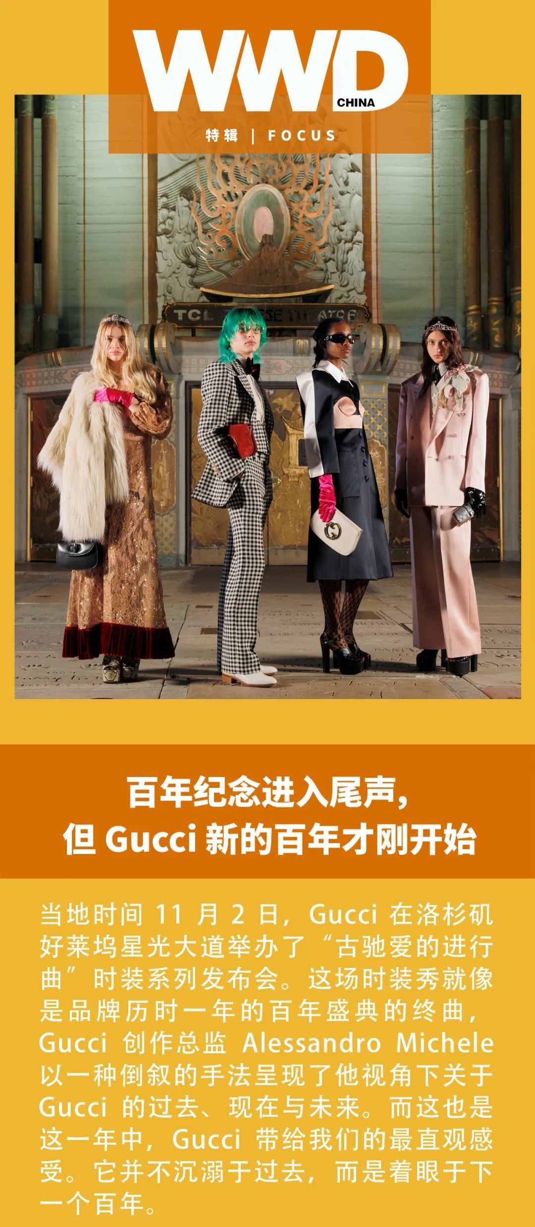 “古驰爱的进行曲”这首百年纪念活动的“终曲”虽然落下,但它的新生却刚刚开始。WWD