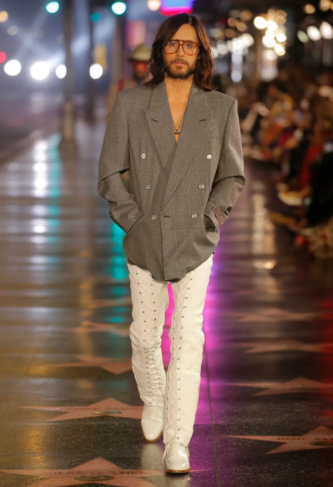 当地时间 11 月 2 日晚上,Gucci 在好莱坞中国剧院前的星光大道举办了“古驰爱的进行曲”全新时装系列发布会。