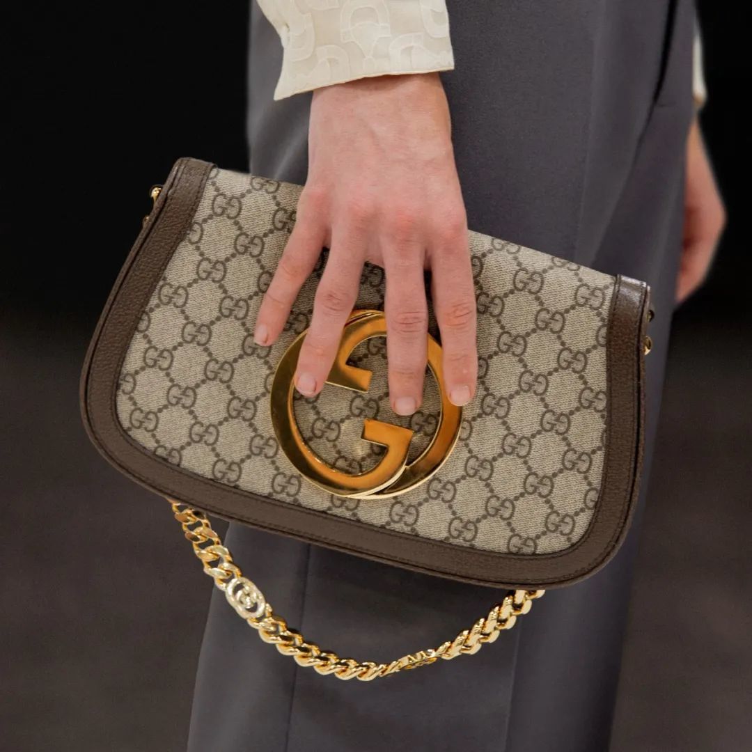 在“古驰爱的进行曲”全新时装系列中,品牌经典的大双 G logo 再次出在包袋设计中
