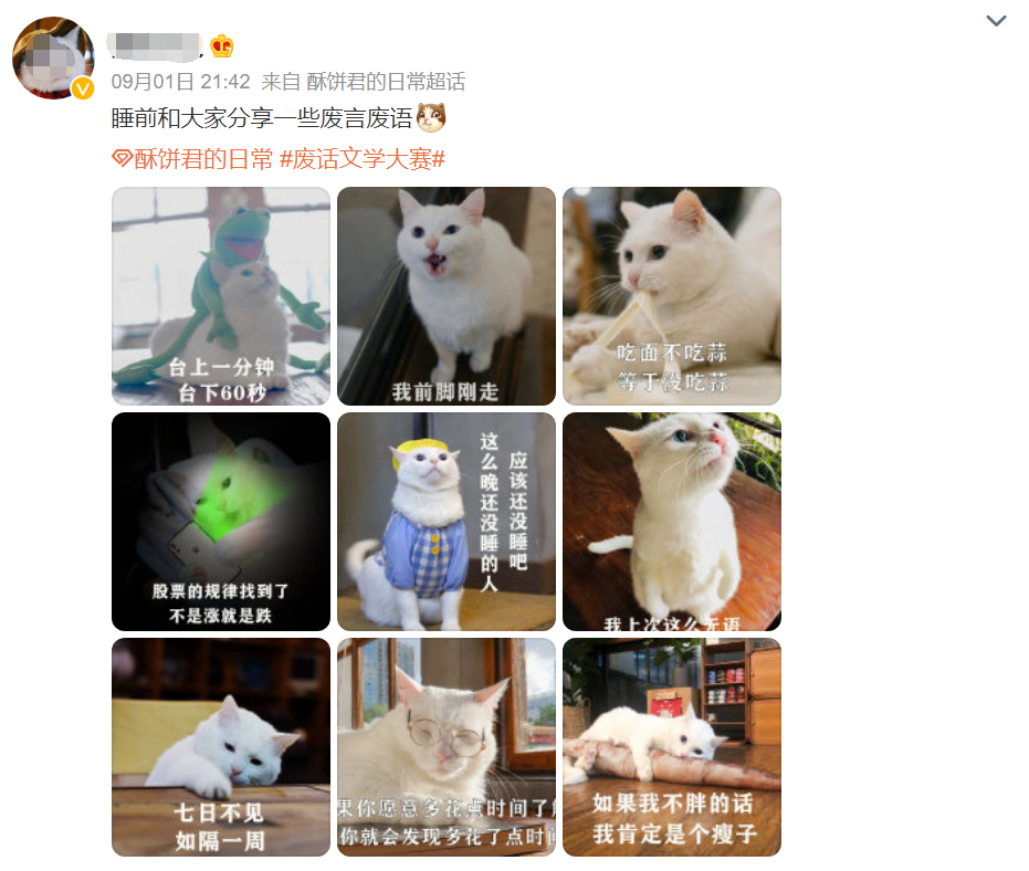 如在#废话文学大赛#火了之后,不少蓝V 品牌推出了自己的借势营销,将魔性、有趣通过自己的方式表达了出来,赋予了内容趣味性与看点,为品牌带来了流量。