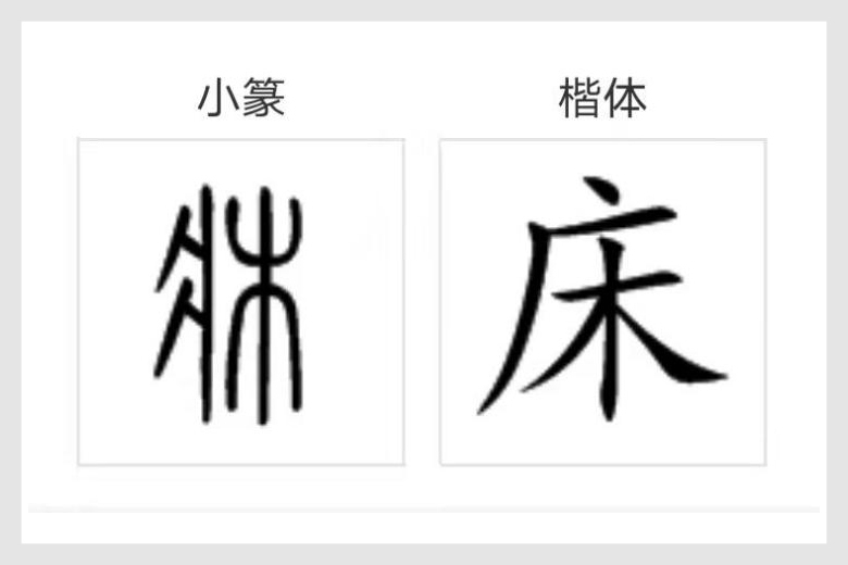 首先《说文解字》中并未收录有“床”字,而是“牀”字。原始的床是两堵矮墙,中间堆放填充草或者皮毛以供坐躺,牀字左边的偏旁就是“墙”的古字。后来,床演变为有底座、有围栏的基本样式,比如河道就是在两岸夹水,所以也叫做河床。再到后来,就直接管有一定承载能力的平台叫床了。