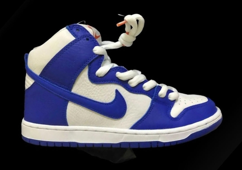最近一款全新配色的 Nike SB Dunk High Pro ISO 在网络上曝光了实物图。整个鞋面采用蓝白双色的荔枝皮拼接打造,搭配橘色的 Swoosh Logo,视觉效果经典百塔。据悉这双全新的 Nike SB Dunk High Pro ISO 会在 2022 年内正式发售,具体发售信息目前未知。