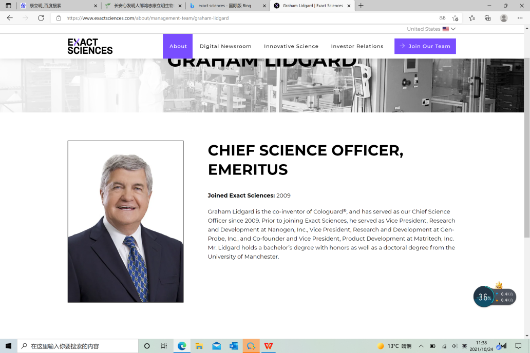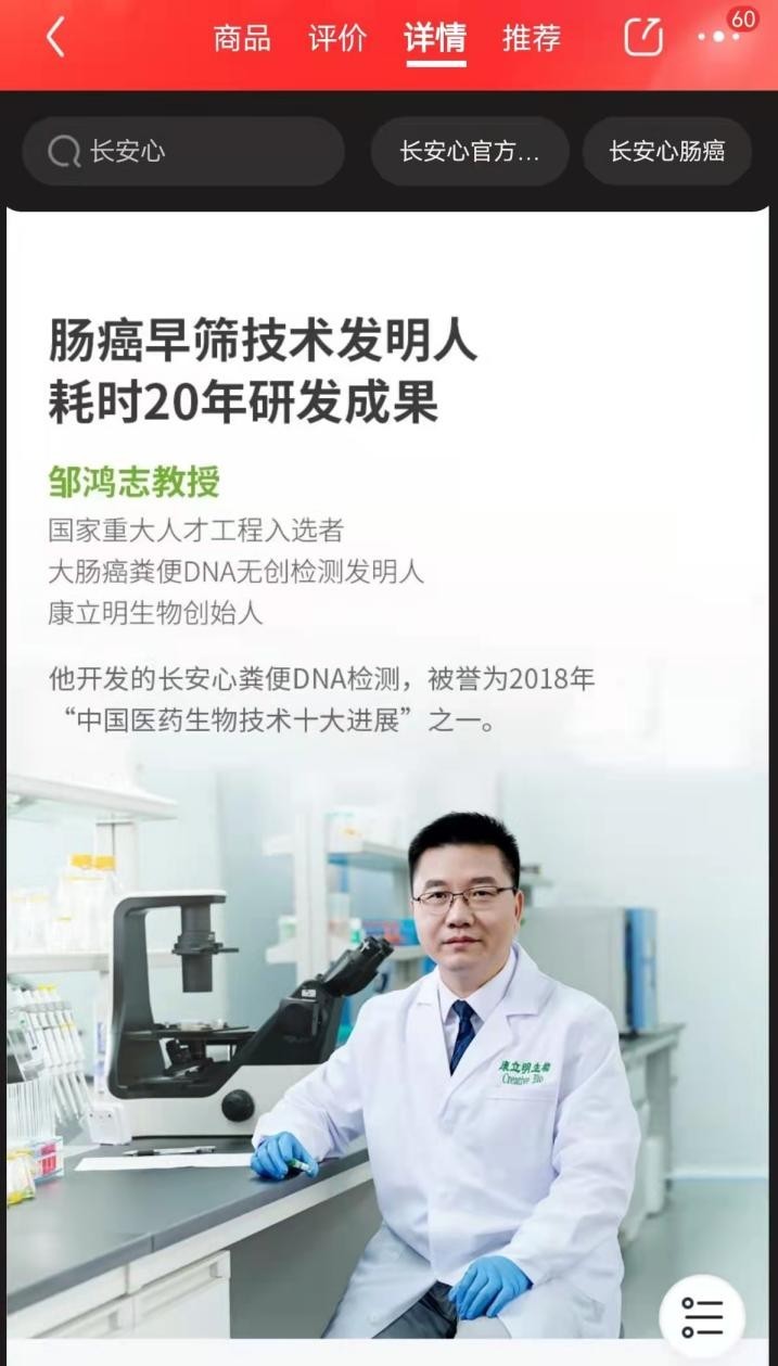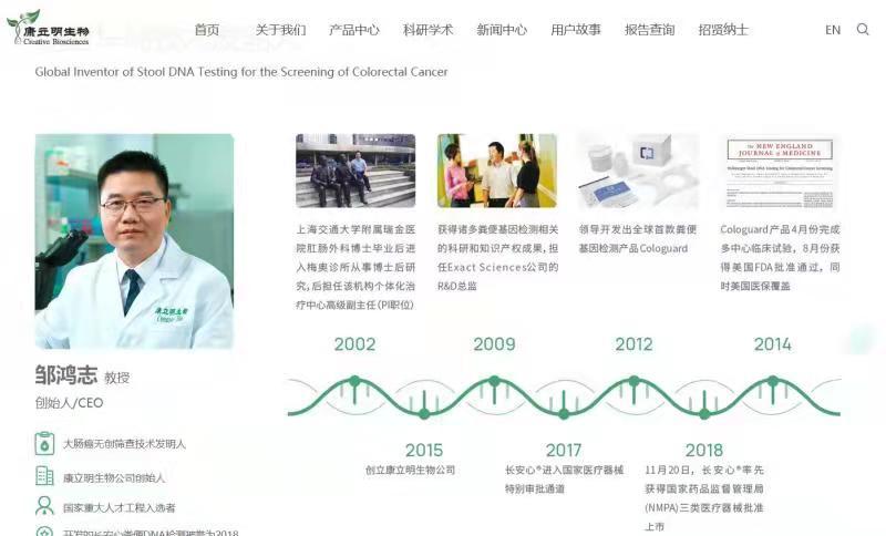 但没有看到康立明生物的官方声明,证明其创始人是美国癌症早筛巨头精密科学认可的“Cologuard全球发明人”,也没有看到康立明生物证明其创始人曾经“领导开发出全球首款粪便基因检测产品Cologuard”,更没有看到其产品 “长安心”具备和Cologuard“水平基本一致”的权威评测或数据报告。