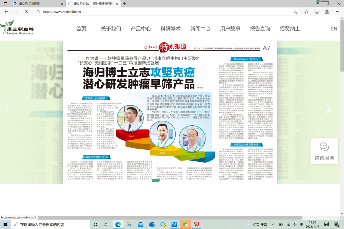 “潜心从事粪便DNA肠癌筛查研究多年的邹鸿志,怀揣着报效祖国人民的梦想毅然归国”11月4日在广州当地知名晚报投放整版文章的康立明这样描述公司创始人。报效祖国消费者信任的根本难道首先不是诚信吗?