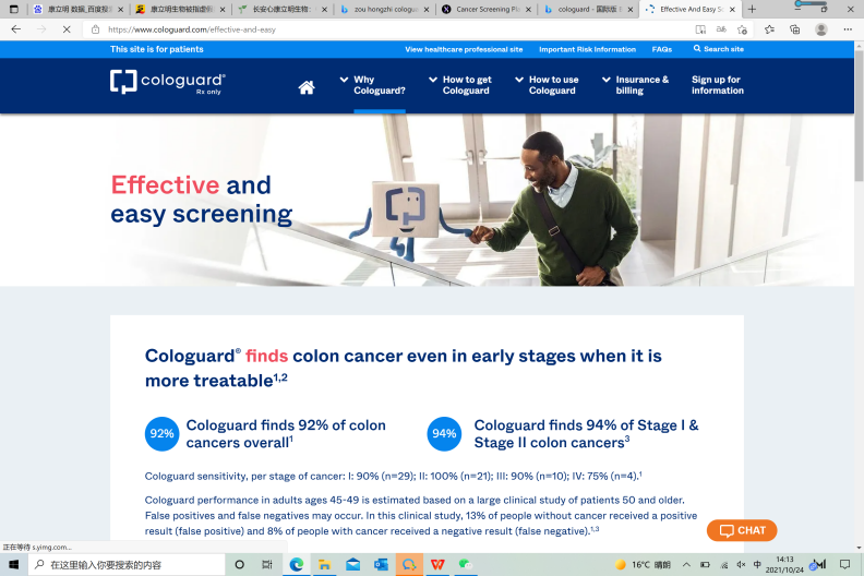 自称“领导”了Cologuard产品研发的康立明创始人应该非常清楚早筛产品灵敏度对用户的重要意义。Cologuard的官网发布了产品检测肠癌的灵敏度:整体可以检测出92%的肠癌,其中对1期和2期肠癌的检测灵敏度达到94%。同时,官网也披露了假阴性(漏检率)数据为8%。