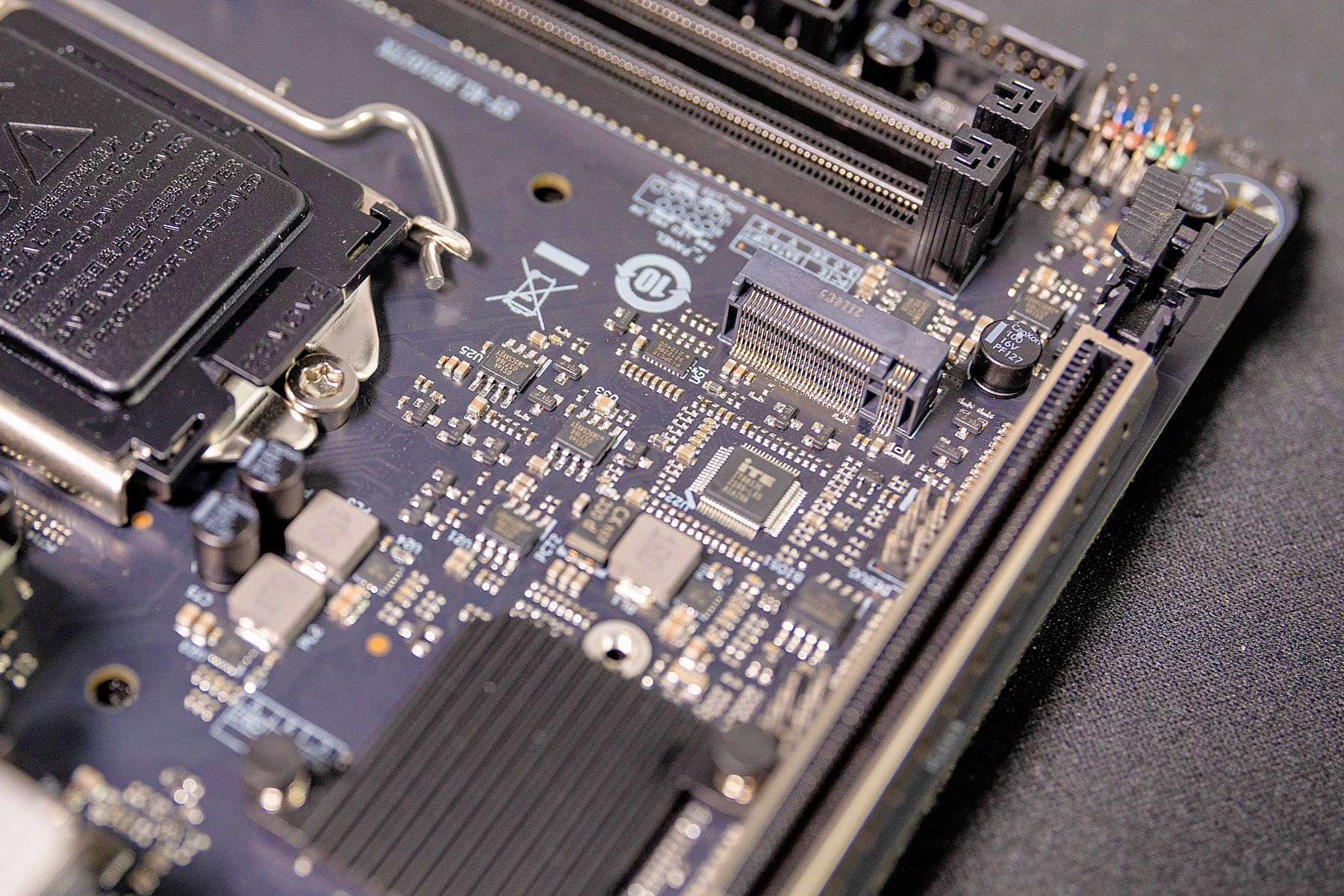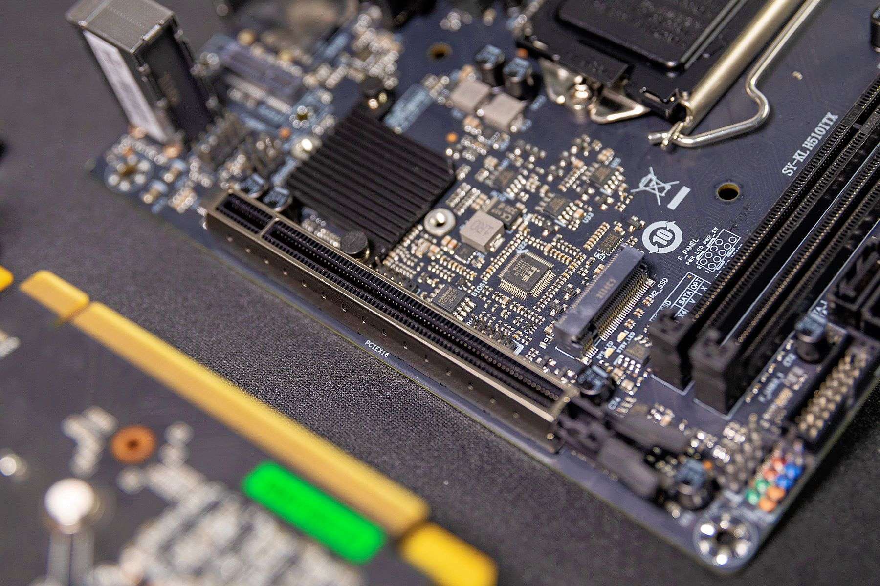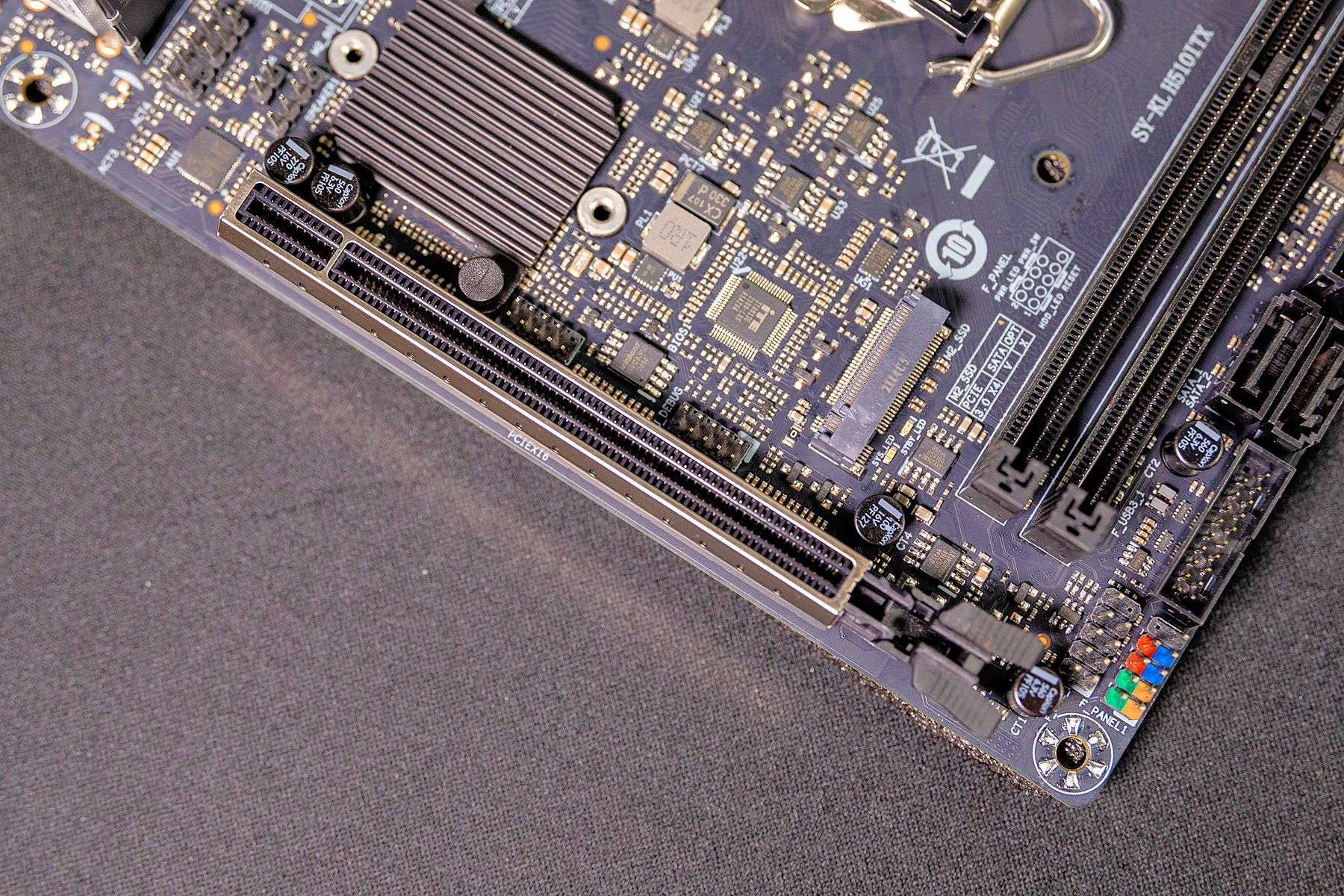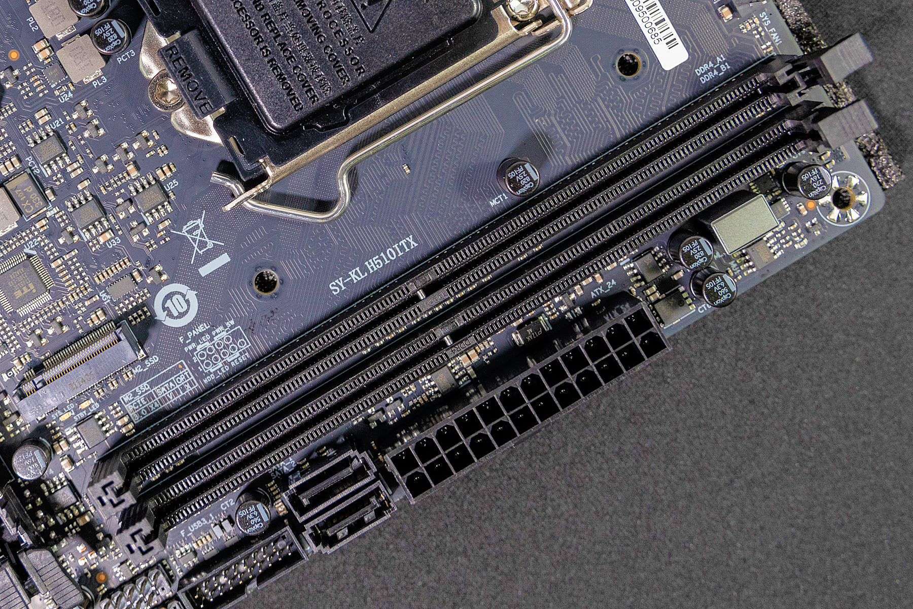 对于挑战者H510ITX主板在一些结构设计上,特别是考虑到小体积主板在安装方面的设计还是非常到位的。比如与机箱的连接接口基本都集中设计在了一侧,从主板背面也可以看到,对于内存、显卡等插槽都进行强化处理。整个外观和做工方面看上去非常优秀。