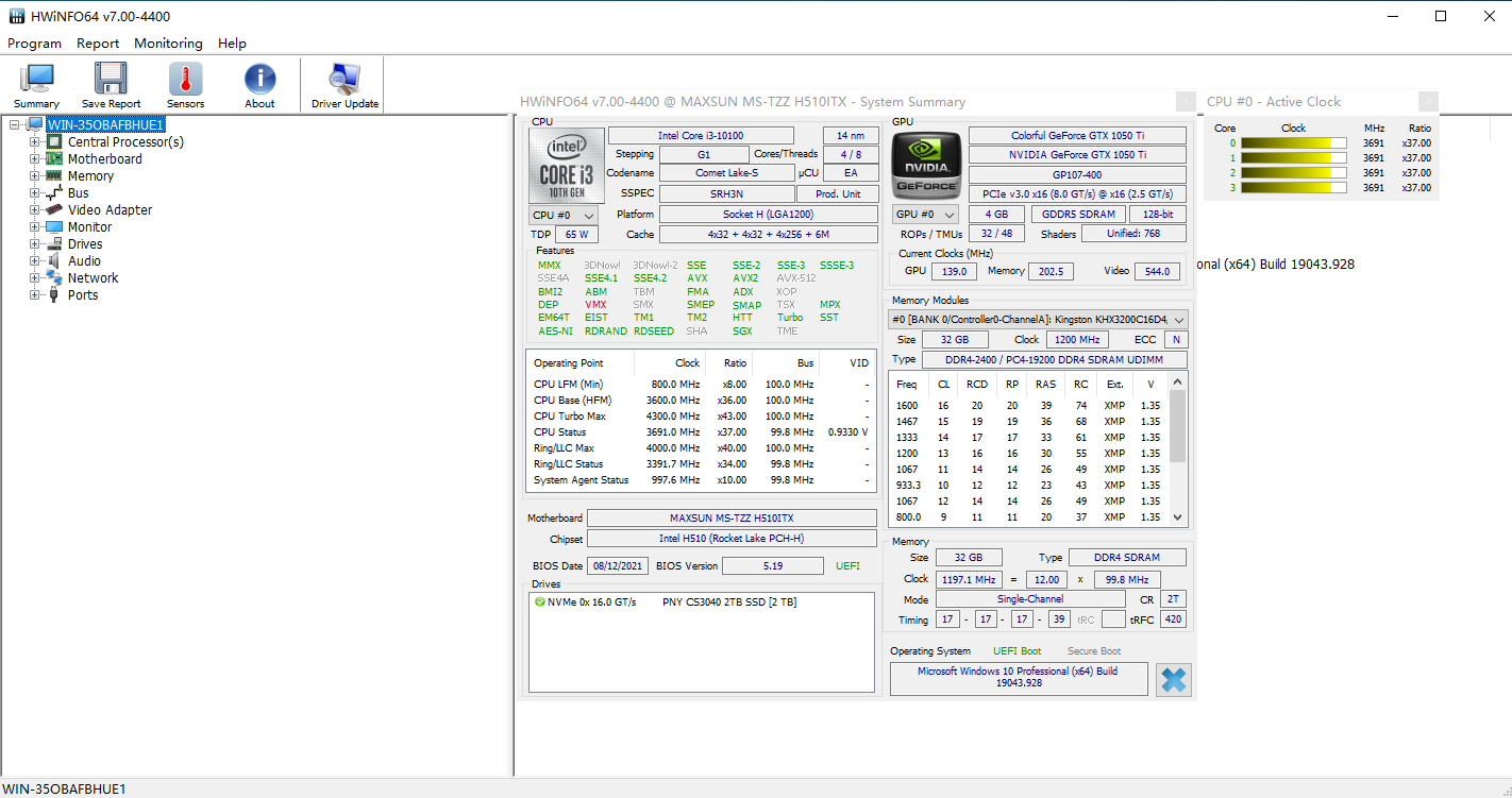 这次,我主要是升级了一下我的老电脑,所以CPU还是使用我的I3-10100处理器。其它配置通过鲁大师就可以看到。