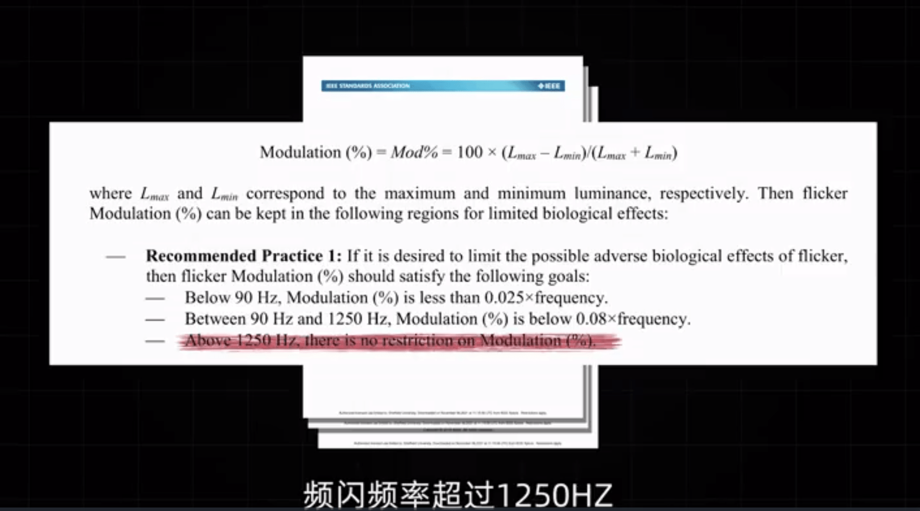 其实针对高频PWM调光和低频PWM调光的区别,知名科普博主@吟游诗人基德 在近期的一段视频中给出过解答。根据相关文献资料显示,频闪频率在100-160Hz之间,虽然人眼已经无法看到频闪,但视觉细胞却可以感知到,并会使人的头痛平均发病率翻倍,且还有可能引起情绪上的波动。
