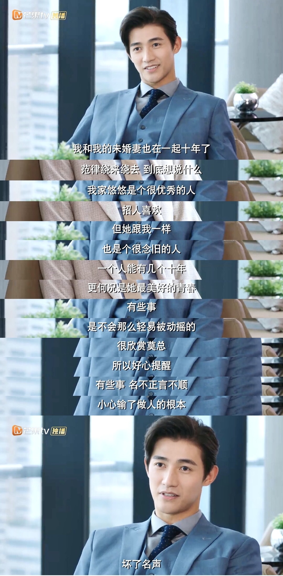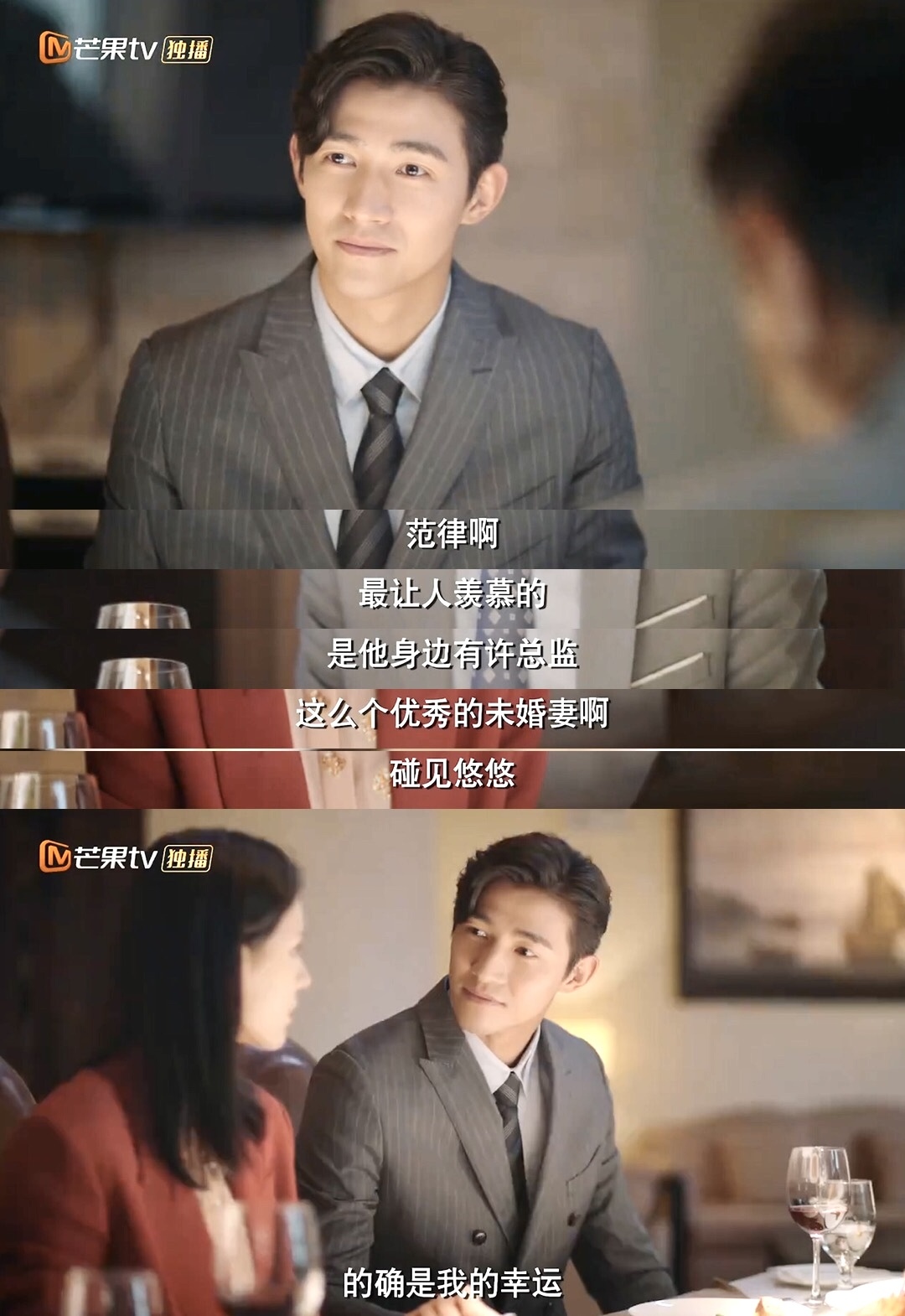 范云锡先是饭局宣示主权,以女主未婚夫的身份说话,又在买钻戒与男主碰面时告诉其即将和女主完婚的消息,甚至在谈话时提醒莫灵泽“小心输了做人的根本”,针锋相对,句句带刺。