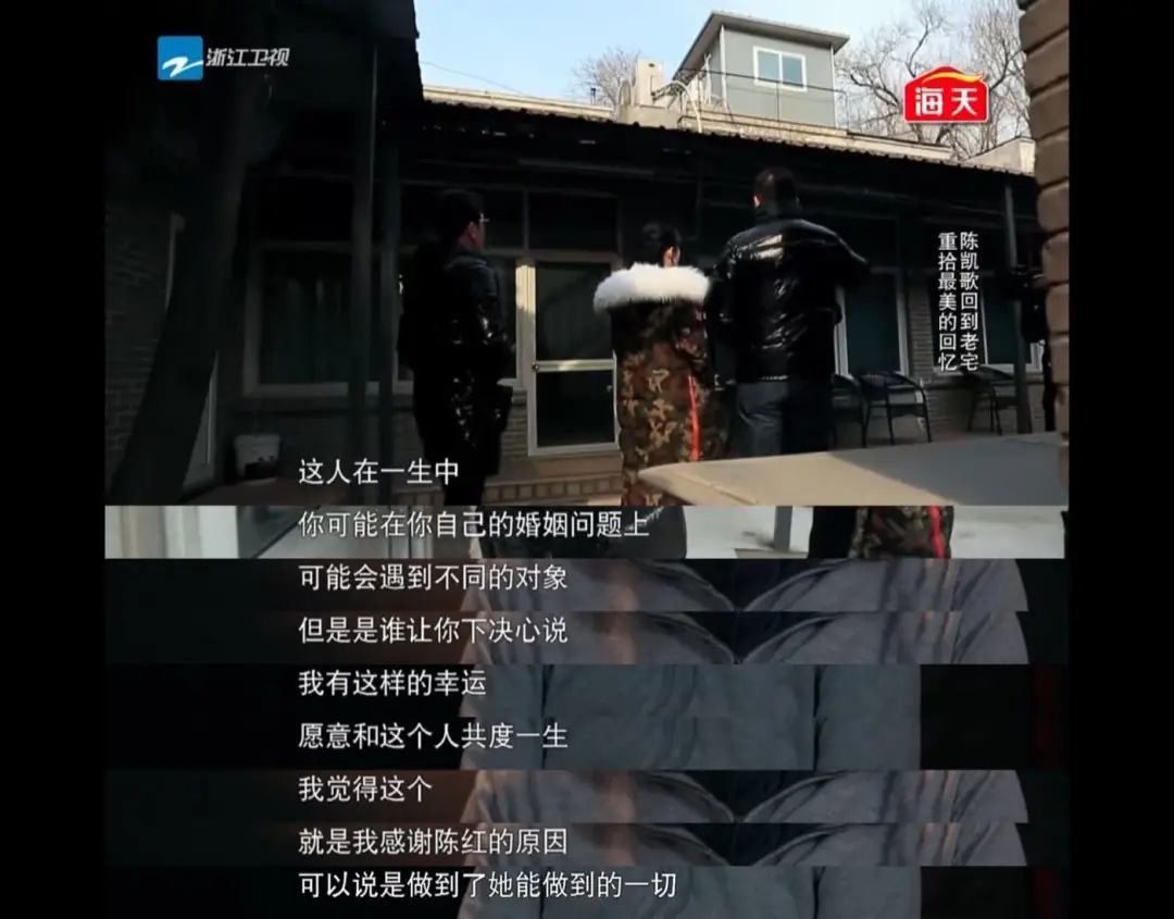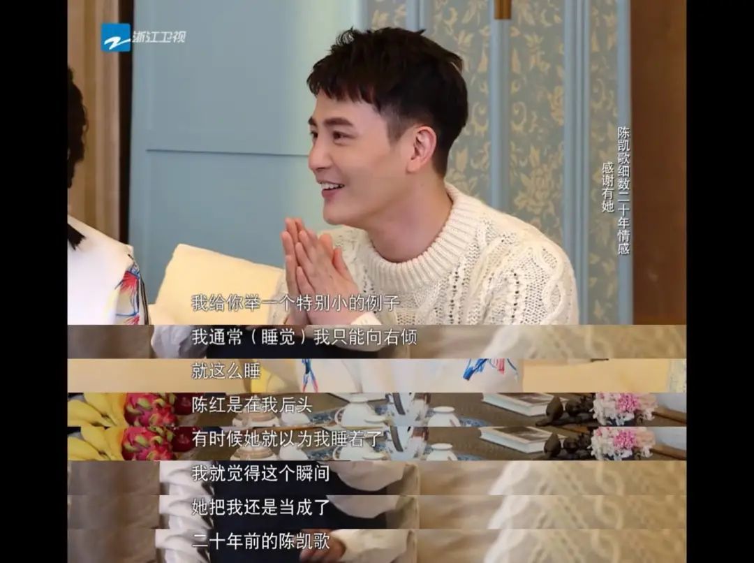 陈凯歌和陈红通话后,MC罗希提出陈红不是一个特别喜欢肉麻的人。凯子哥一听顿觉说到心坎儿里了,于是借着为何要参加这个节目进行了一番表白,并缓慢而沉稳地举了一个例子: