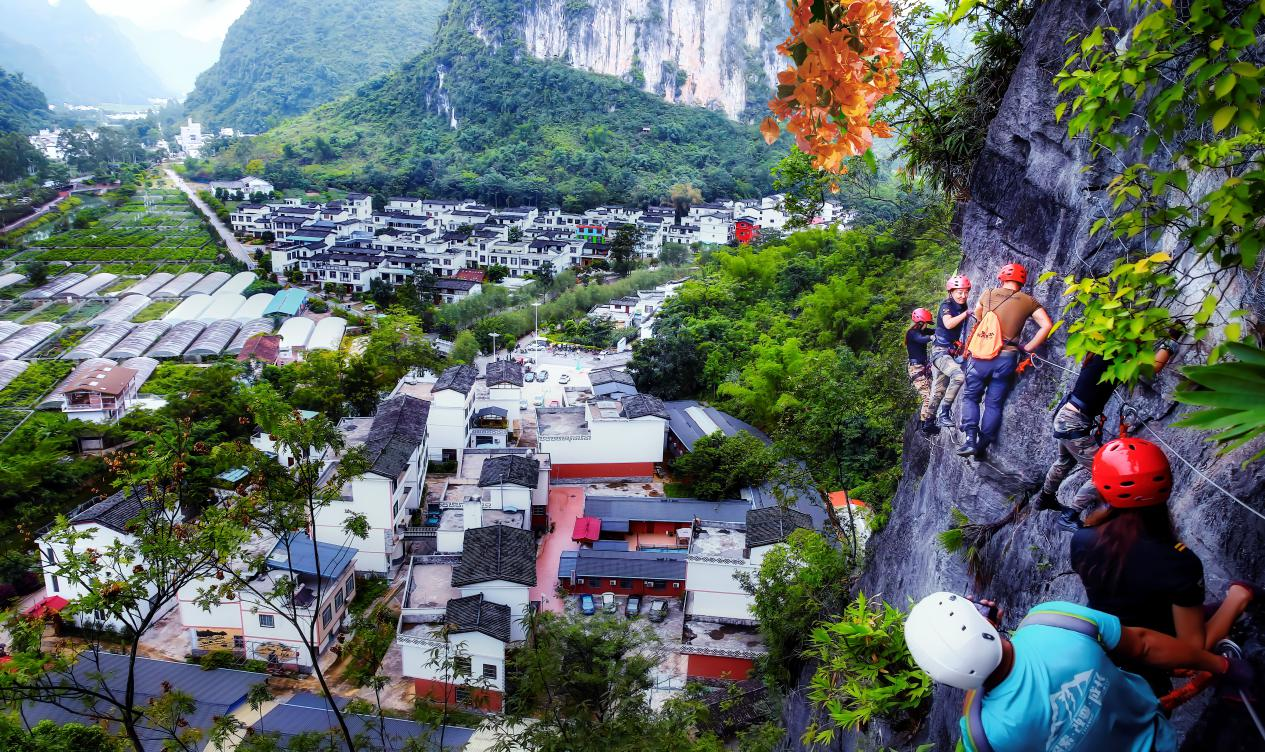 近年来,马山县依托自身丰富的山地资源,全面布局、大力发展以攀岩为代表的山地户外运动产业,建成全国首个攀岩特色体育小镇,以此为中心进行规划布局辐射周边地带。截至目前,攀岩小镇已完成投资约1.2亿元,开发了22面岩壁553条攀岩线路,建成23所攀岩学校、9条登山栈道、9个攀岩平台、1个室内攀岩馆、2条飞拉达线路,同时配有民宿、汽车营地等系列游玩设施。曾成功举办四届中国—东盟山地马拉松系列赛、三届环广西公路自行车世界巡回赛及中国—东盟攀岩精英赛、攀岩大师赛、2020广西青少年攀岩锦标赛等诸多重大赛事活动,吸引众多国内外攀岩爱好者、游客前来,多方面带动当地旅游、民宿、餐饮、特色农产品等发展,形成了“体育+文旅+扶贫+县域发展”的马山独特发展模式。马山县积极探索形成的“体育+”模式,有效推动了农文体旅共兴和一二三产业融合发展,2020年接待国内游客451.6万人次,旅游消费31.28亿元。“十三五”期间,全县游客接待量、旅游总消费年均增长率均保持在30%以上。体育扶贫、文旅扶贫带动贫困人口占全县脱贫人口达17%以上,马山之岩带领当地全面迈向小康之路。