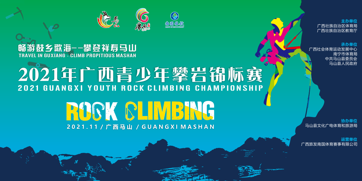 “畅游鼓乡歌海-攀登祥寿马山”2021年广西青少年攀岩锦标赛将于2021年11月13日—14日在马山县古零镇初级中学攀岩馆火热举行。由设区市、中国火车头中国铁路南宁局集团有限公司体育协会及经市级体育行政主管部门批准的协会或俱乐部组织选手参赛。按照年龄来划分甲乙丙组三个组别,设置男子、女子全能、难度、攀石、速度(标准赛道)、速度(随机赛道)共计5个项目比拼。