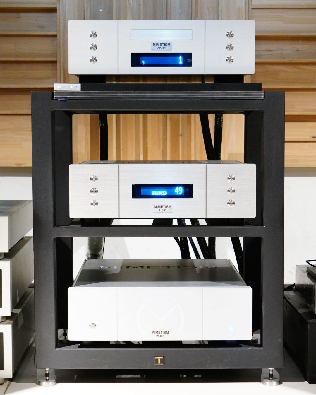 为了更全面地测试Terra的性能,我们先后换用了MIMETISM的AL432合并机和PL342+PA462前后级组合和保加利亚的Thrax Audio (玫瑰骑士)Enyo电子管合并功放,前端音源选择了MIMETISM的CD422,搭配线材为德国敏力系列。这是一套声音中性,解析力、控制力出色的前端系统,此前也搭配过其他品牌的音箱产品,均拥有不错的音效。