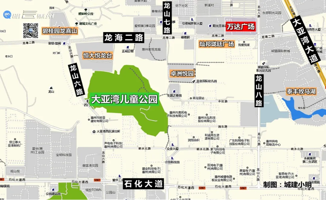 先来回顾下这个公园历史。早在2017年,大亚湾就启动了惠州市首个儿童公园——— 大亚湾儿童公园,大亚湾儿童公园位于西区塘尾,东靠龙山七路,龙山六路从中穿过,北临龙海二路,南距石化大道。当时将项目定位为集野外拓展、健身娱乐、科普教育、游船观光、植物采摘等功能于一体,以亲子游乐为主的综合性公园。