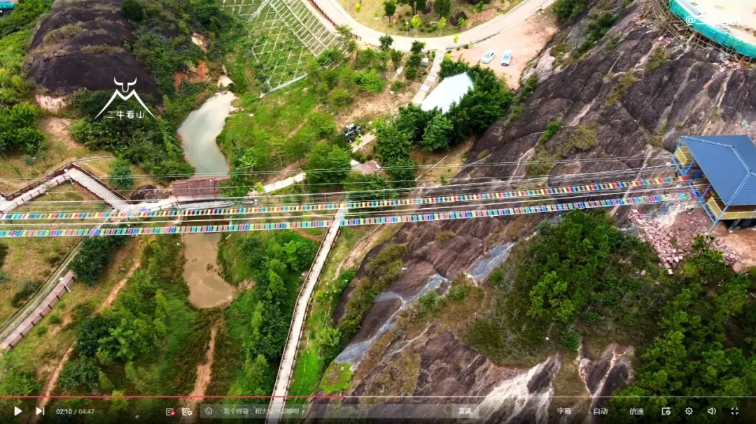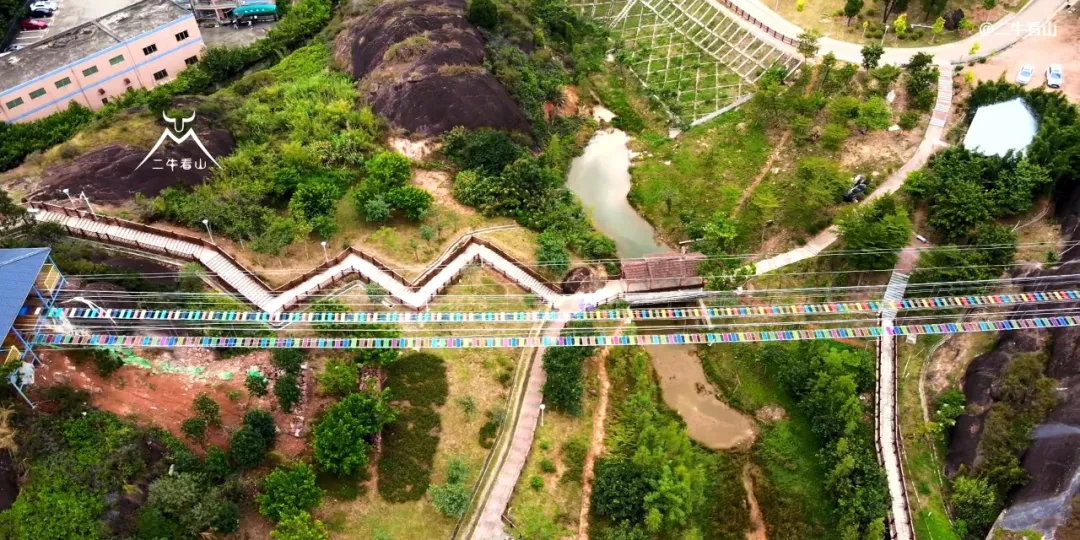 彩色的高空吊桥,为双桥平行吊桥,一条为玻璃质面,另一条为木质面,距离地面58米,单桥长度达158米。