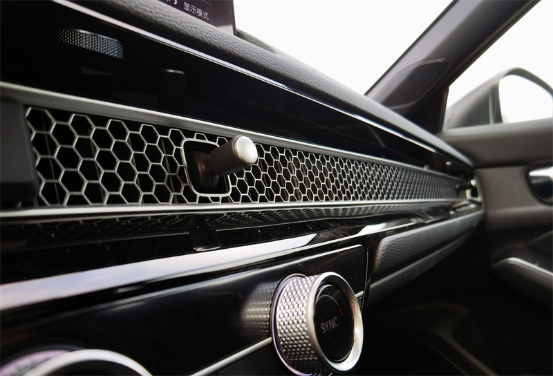坐进第十一代思域的车内,我以为自己上错车了!这还是本田的内饰吗?全系标配9英寸的中控大屏,好用又丝滑!10.2英寸的全液晶仪表,让身为运动家轿的思域瞬间提升了科技感,不过这个你得选配!内饰一大亮点在这了,贯穿式的蜂窝状空调出风口,车探忍不住想幽默地说一句:“就这个设计它曾经获得过~我的夸奖!”