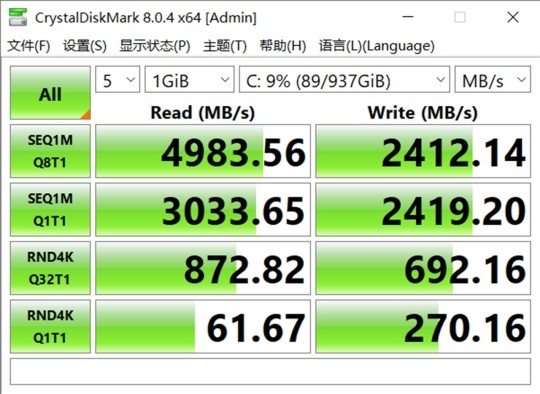 硬盘方面,技嘉AORUS 15P选择的是1TB的NVMe PCIe 4.0 M.2 SSD。在CrytalDiskMark测试中,这款硬盘的顺序读取速度为3541.32MB/s,顺序写入速度为2661.23MB/s,4K随机读取速度为70.04MB/s,4K随机写入速度为163.47MB/s。从实际性能表现来看,这款硬盘的性能表现已经达到了PCIe 4.0 SSD中上等水平,在给玩家带来高效读写速度的同时,还能够大幅缩短游戏加载时间,改善游戏体验。