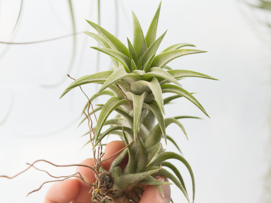 养护空气凤梨(Air plant)一定要给一点柔和散射光,保持环境温润通风,保持50%以上的空气湿度,一个月左右浸盆一次(浸盆半小时)。空气凤梨不需要经常施肥,偶尔给喷一点凤梨科专用肥,浓度比平常低4倍,冬季避免受冻,它们就可以长得很好了。