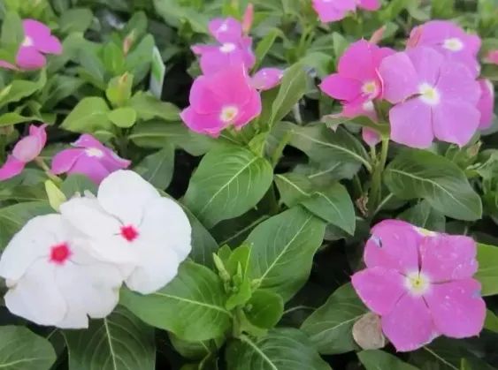 在以前长春花一般只能看到粉色花的品种,看起来会比较单调,而现在我们还可以看到很多其他的花色,包括红色、橘黄色、白色、橙色等。