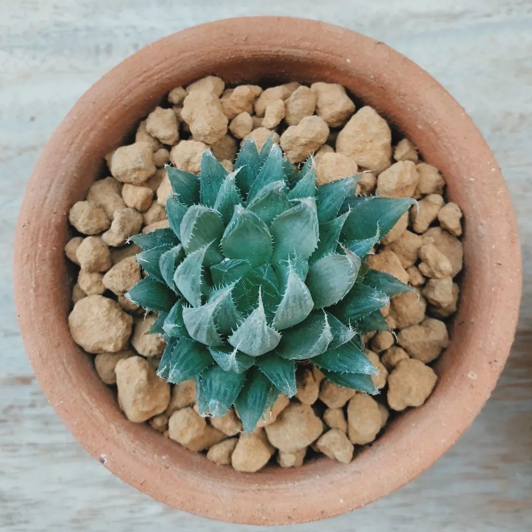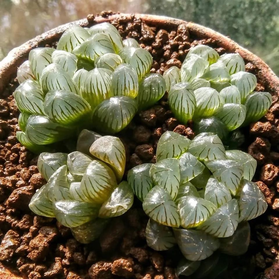 上面是用赤玉土栽种的樱水晶Haworthia cooperi Var. Cooperi