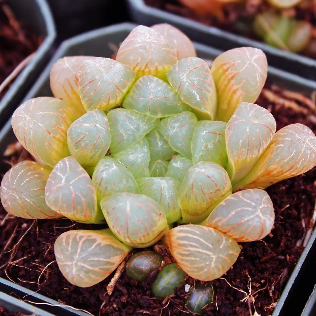 玉露其实有非常多的普通品种,可以选择价格特别便宜(比如姬玉露、圆头玉露、三角琉璃殿、冰灯玉露和紫肌玉露等),新手可以尝试一下,玉露的根长得特别粗壮,且会长得比较深,甚至比它植株要高几倍。